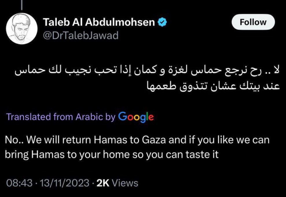 В августе 2024 года он написал на арабском языке: «Уверяю вас: Если Германия хочет войны, мы ее получим. Если Германия хочет убить нас, мы убьем их, умрем или с гордостью отправимся в тюрьму. Поскольку мы исчерпали все мирные средства, мы столкнулись лишь с новыми преступлениями со стороны полиции, государственной безопасности, прокуратуры, судебных органов и министерства внутренних дел. Мир для них бесполезен».