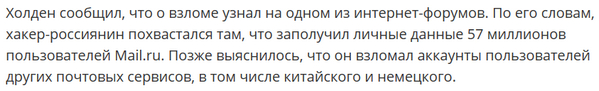 Ссылку прислали на статейку в "Вестях" - "Русский хакер" похитил данные миллионов пользователей Google, Yahoo и Mail.ru.