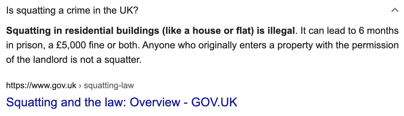 Просто законы в Испании работают не эффективно. Поэтому выселяют их не за 15 минут, а за пол года. Но по закону 😄 Зачем ты про Британию что-то писал - не понятно.