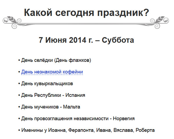 Сегодня немало достойных праздников - один День кувыркальщиков чего стоит. Но и День незнакомой кофейни - доставляет!