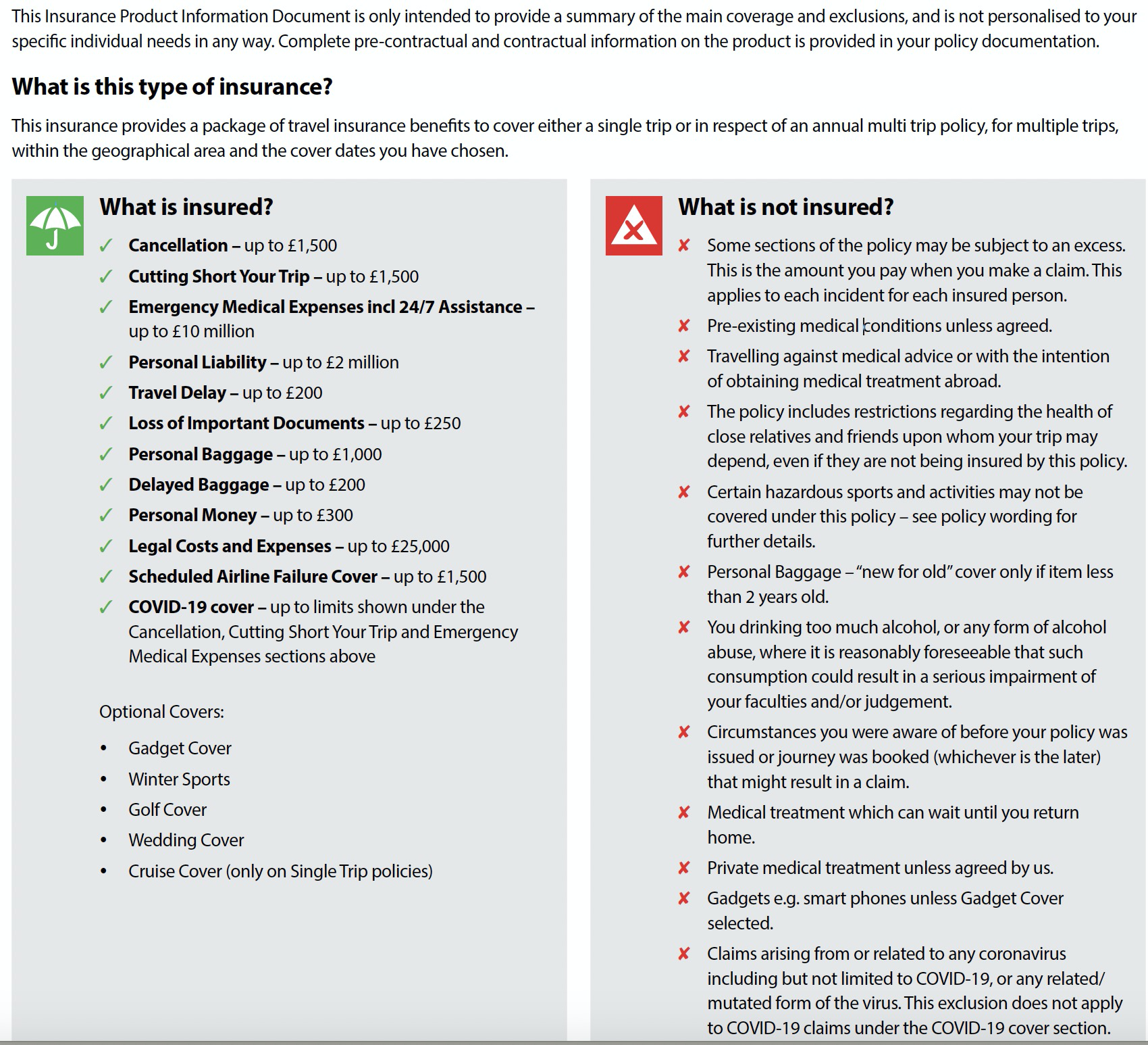 "What is not insured? <…> Private medical treatment unless agreed by us" (см. снимок экрана в моем предыдущем комментарии).