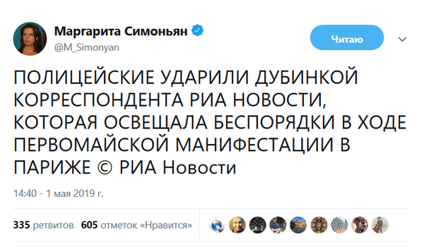 Симоньянша страшно переживает за корреспондента РИА в Париже.