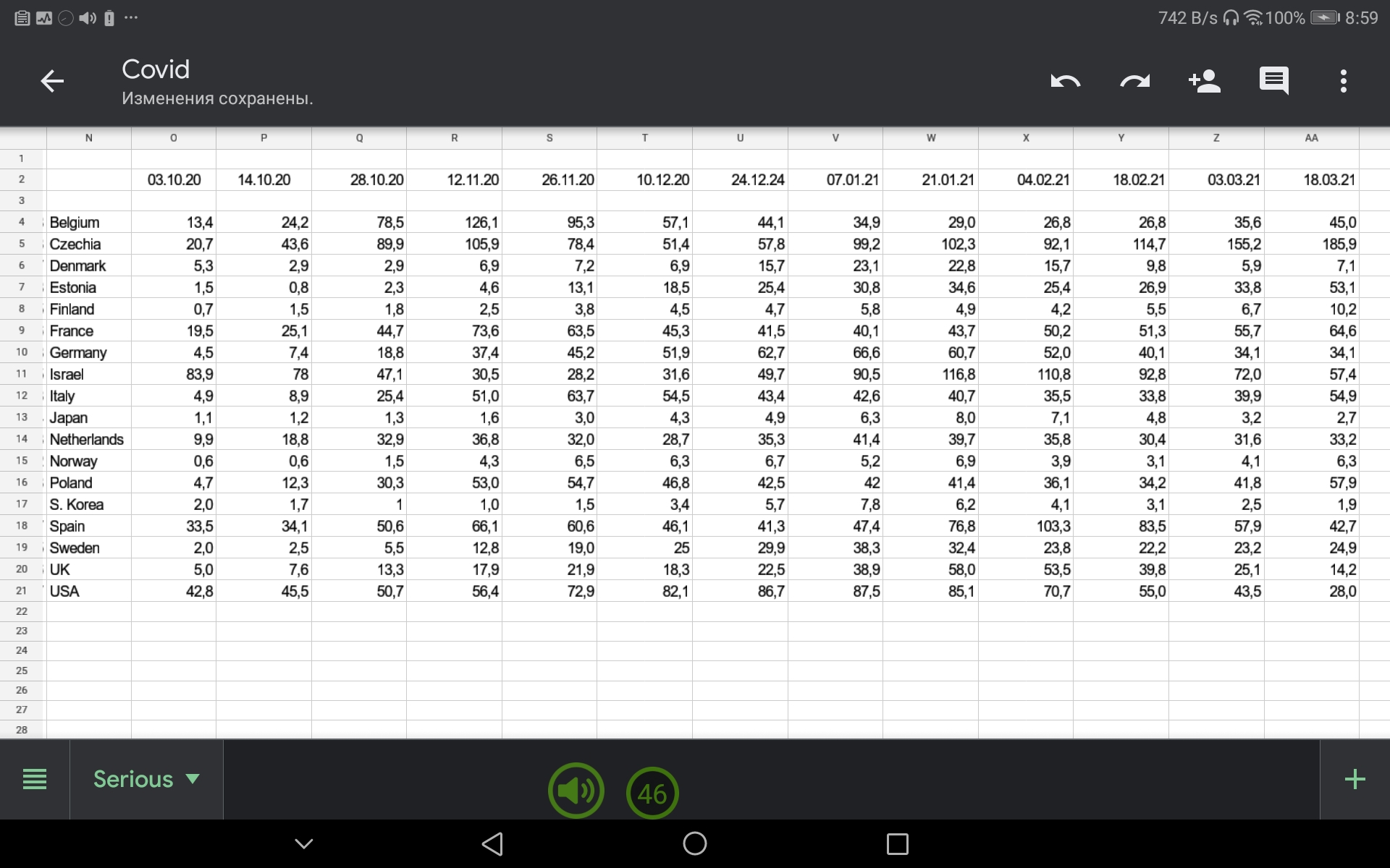 Очередной двухнедельный отчёт ( с опозданием ) по тяжёлым на миллион населения с Worldometers на 18.03.21