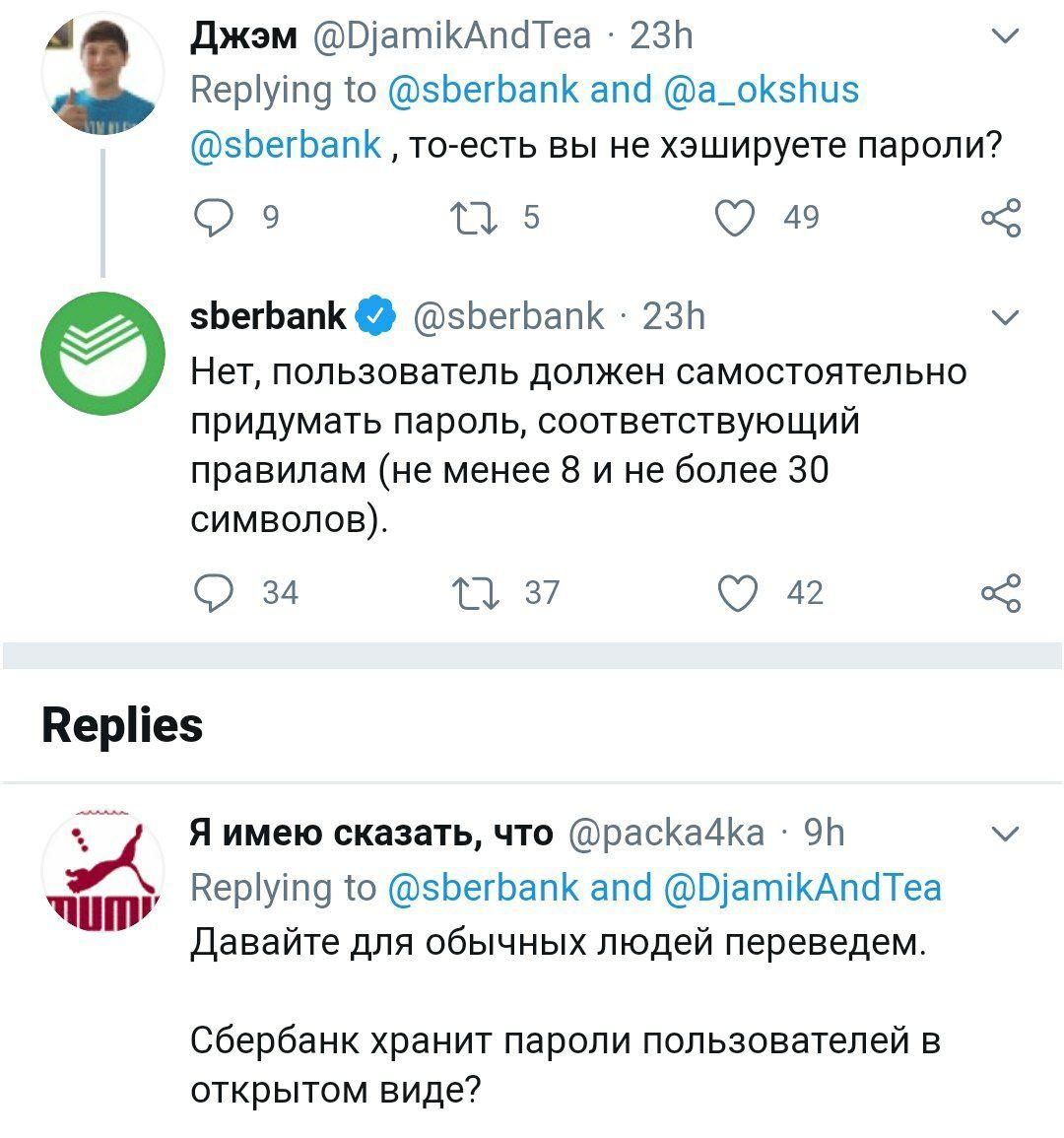 Сбербанк ещё и хранит пароли в незашифрованном виде.