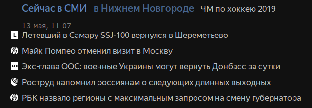 Вот повестка дня наших сми, согласно агрегатору Яндекса