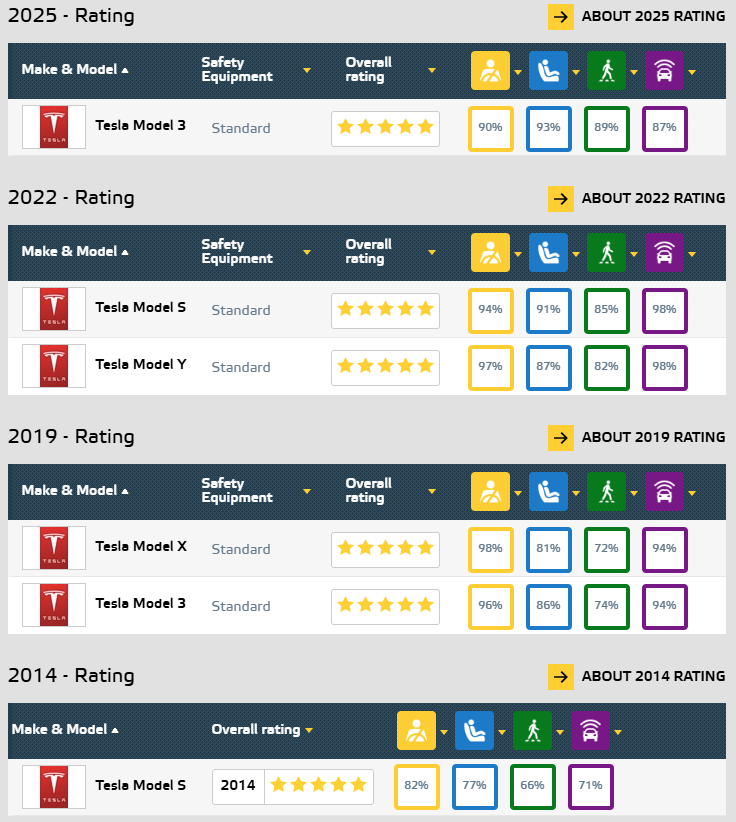 Из сайта Euro NCAP я узнал, что у всех моделей Tesla начиная с 2014 года (3, S и Y) по 5 звёзд безопасности. А по столкновению с полицейским грузовиком и не скажешь.