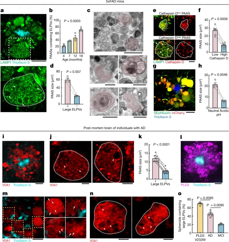 Обнаружили учёные и причину накопления лизосом в утолщениях: ей оказался белок PLD3, избыток которого приводит к тому, что лизосомы начинают слипаться друг с другом.