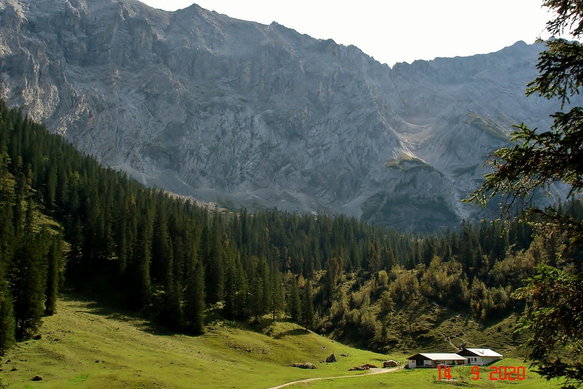 Соглашусь! Это так называемая долина Веттерштайнальм, 1464 м н.у.м. и вид на горный массив Веттерштайнванд (регион Гармиш-Партенкирхен). Находится так сказать на половине пути к так называемой "королевской усадьбе на Шахене" (горная маленькая резиденция Людвига II Баварского) от этого места надо еще метров 400 вверх топать...мы в этот раз не дошли, поздно стартанули. Но есть куда стремиться, надеюсь, что еще раз выберемся туда.