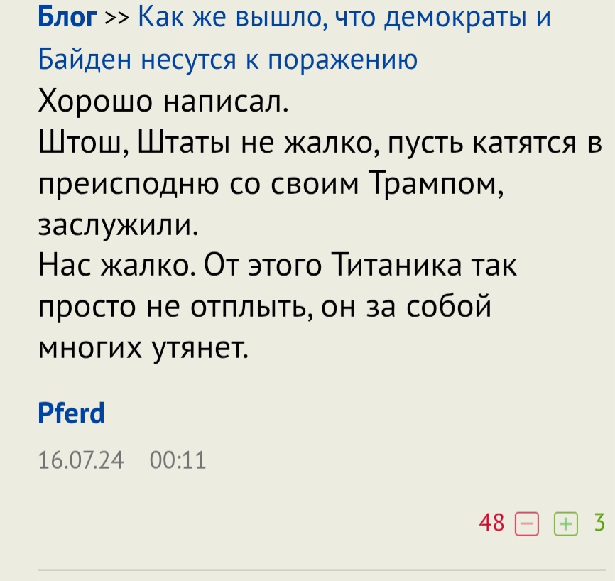 Возможно, я даже не удивлюсь, если трамп пообещает послать войска и открыть второй фронт.