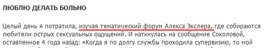 В Интернете шумит история о некой тетке-психологе Лейле Соколовой, на основании выводов которой посадили Владимира Макарова. Лейла Соколова, как выяснилось, сама увлекается BDSM, о чем пишет на форуме BDSM, который при этом называют "тематическим форумом Алекса Экслера".