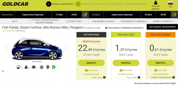 Upd: В комментах пишут, что этот Goldcar сильно оскотинился за последнее время и им лучше не пользоваться. Имейте в виду, а то окажется, что я порекомендовал. Я ими уже года четыре не пользовался. Раньше были вполне нормальные. Но, видать, что-то пошло не так.