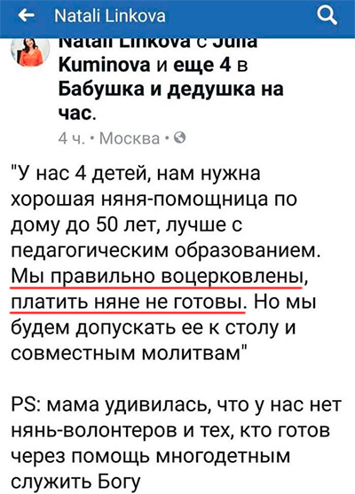 Это у Натали Линковой в сервисе "Бабушка на час" такие экземпляры попадаются. Потом прибегают на комменты жаловаться - искренне не понимают, с чего над ними ржут.