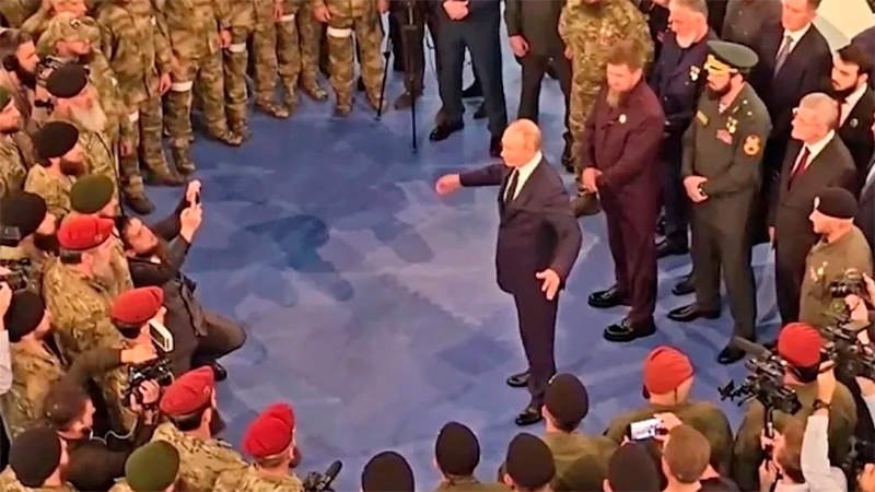 Вчера Путин, в том числе, посетил и Чечню, где в Российском университете спецназа имени Путина (это не шутка), расположенном в Грозном недалеко от нового района Грозного имени Путина (это не шутка), встретился с добровольцами, готовыми через некоторое время быть утилизированными в Украине, где заявил, цитирую: