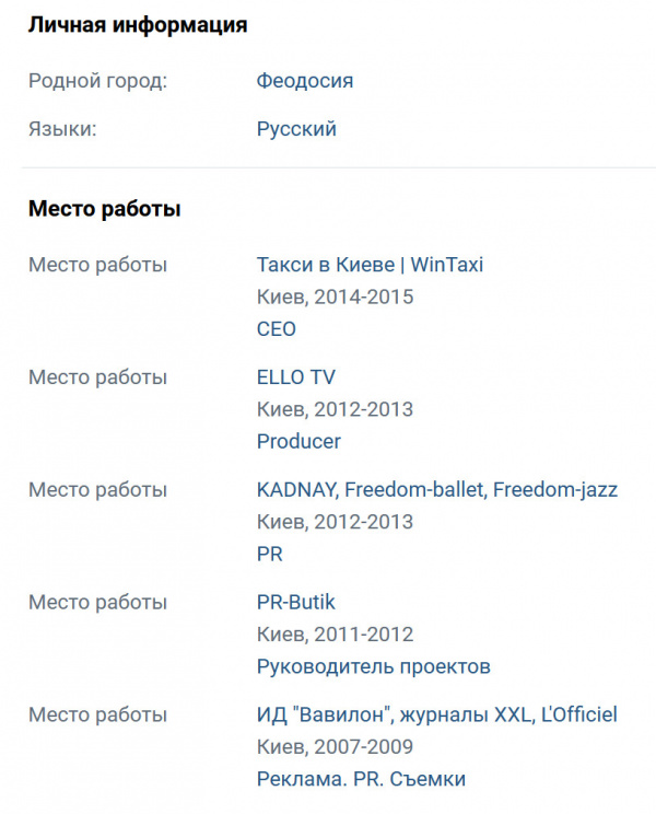 Ну а по сабжу все понятно... Феодосия, надо выживать в большом мире за пределами каменистого острова. Однако место курортно-морское, так что с детства привыкаешь видеть красивую жизнь и много денег (не твоих, увы). Значит, вперед - в столицу, за бабками! По году на каждом месте работы, искала себя, в принципе это нормально, должность СЕО после ТВ продюсера показывает что - нашла. Ну а следование за ручьем денег без запаха привело в раиссю, как и многих других. Где пришлось доказывать свою лояльность на уровне х3 к местным, а не то обратно в Киев сошлют, и весь длинный путь коту под хвост, где тогда на фоне недостроев на крымском берегу фоткаться?