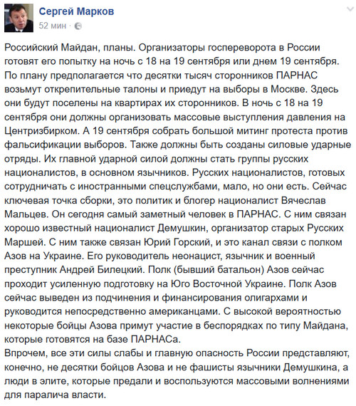 Непонятно. Т.е. 19 сентабря не будут собирацца митинги против "сфальсифицированный выборов"? Малцев не нацист что ле?