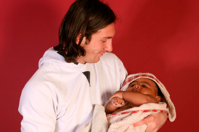 Фотограф, делавший фотографии, вспоминал, что Месси был очень застенчив, но послушно выполнял все, что от него требовалось. Он сначала взял Ламина на руки, а потом фотографу пришла в голову мысль посадить ребенка в детскую ванночку. Мама Ламина принесла утенка, и тогда Лионель с Ламином стали играть с этим утенком, и тогда все получилось.
