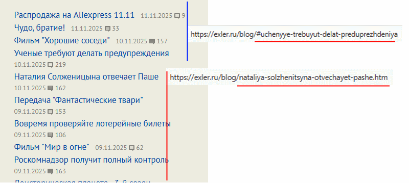 Последние посты идут якорями на блог вместо ссылок на страницы. Или специально так?