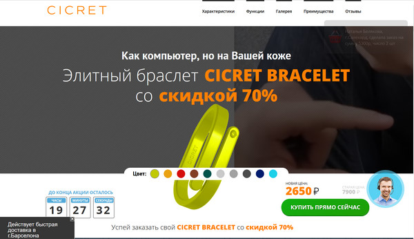 Сайтик обладает совершенно классическими признаками законченных жуликов - до конца акции там все время остается сколько-то там часов, минут, секунд, нарисована большая "скидка", периодически всплывают окошки с сообщением, что "Люция Куздрякина, г. Уссурийск, сделала заказ на три браслета на сумму 7950 рублей", всплывает окошко о том, что в ваш город (где бы вы ни находились) действует быстрая доставка, обещают "гарантию возврата средств", ха-ха, ну и все такое.