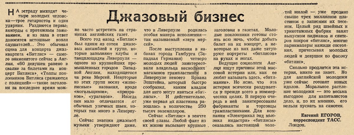 Что советский пропагандон забыл перевести и вставить в свою статейку. Не говоря уже о сотнях других зарубежных материалах, в которых Битлз давались совершенно другие оценки