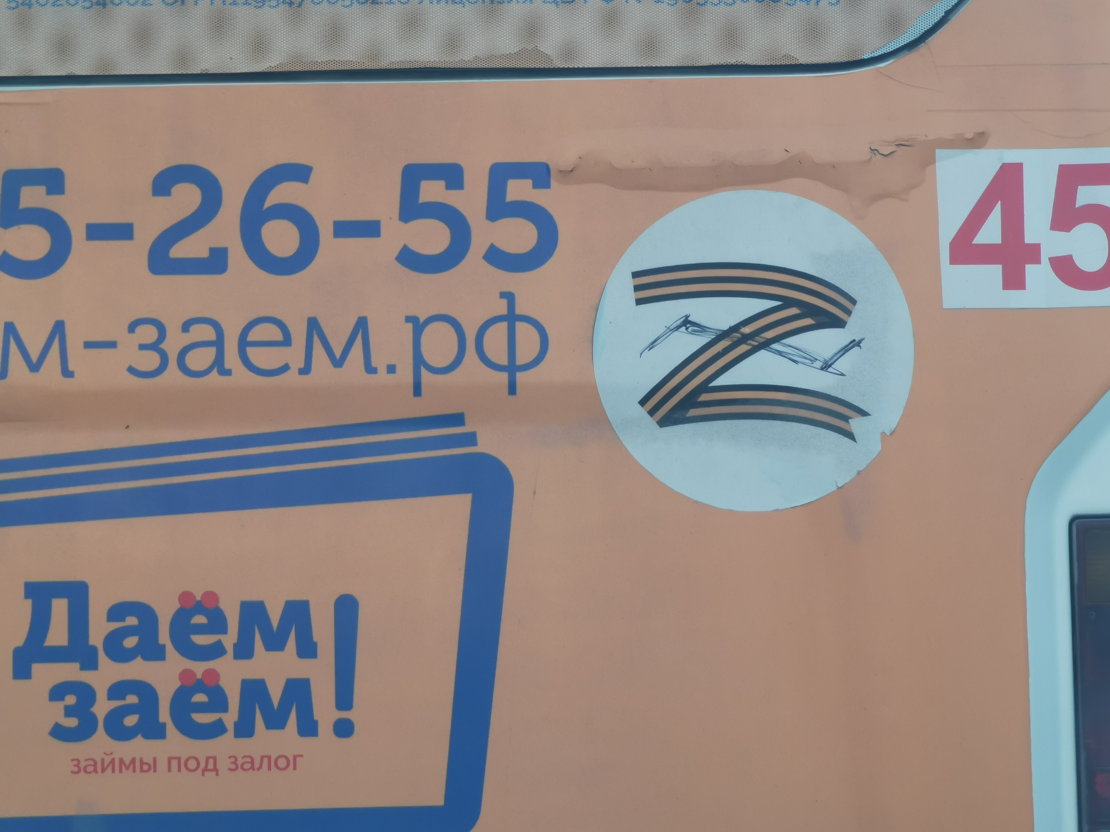 При том что на выездах из города вовсю торгуют флагами с z, наклейками.