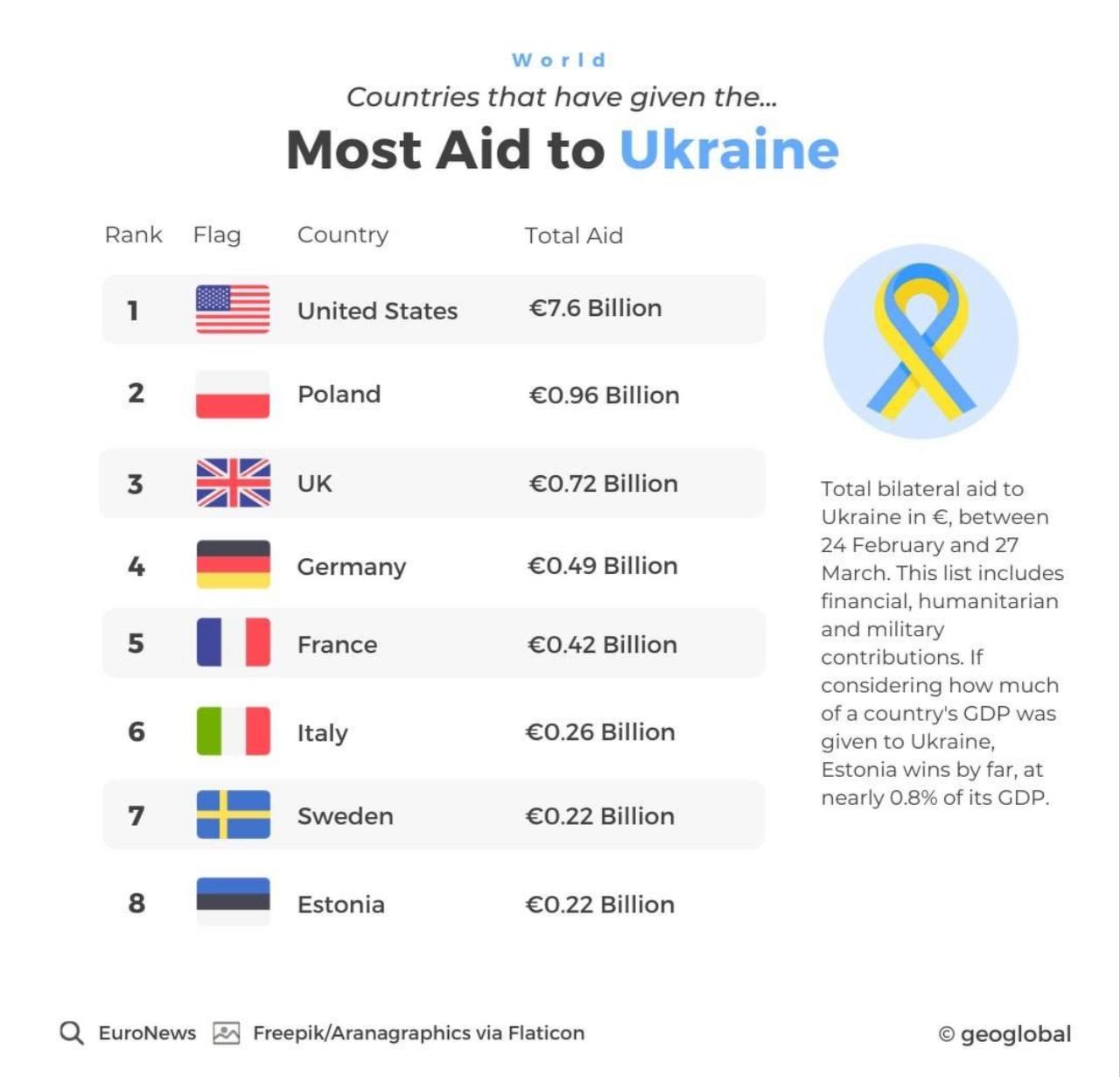 После того, как Украина показала всем, что дает отпор агрессору и не будет захвачена в ближайшее время, количество помощи увеличилось. И еще больше увеличилось после Бучи