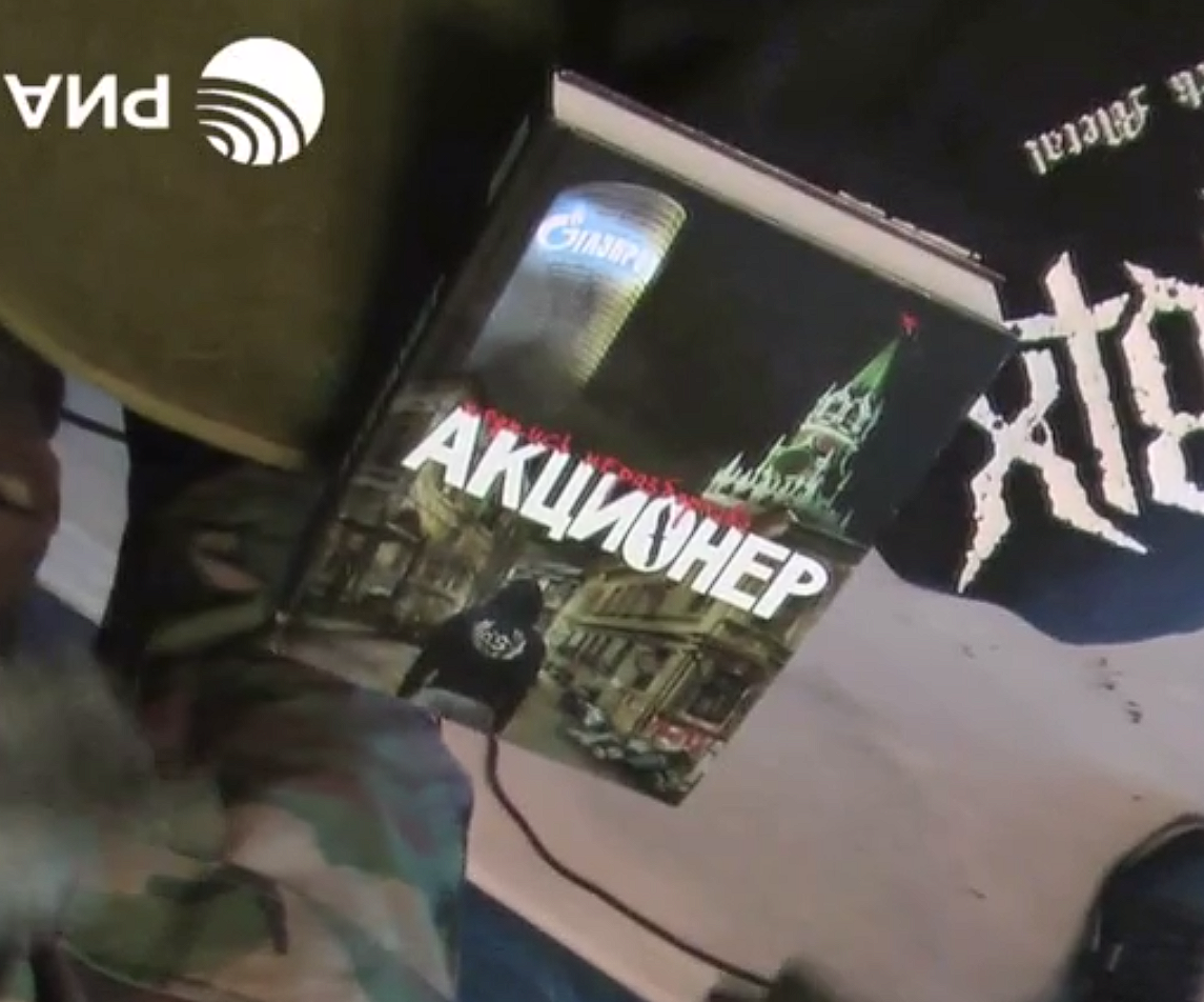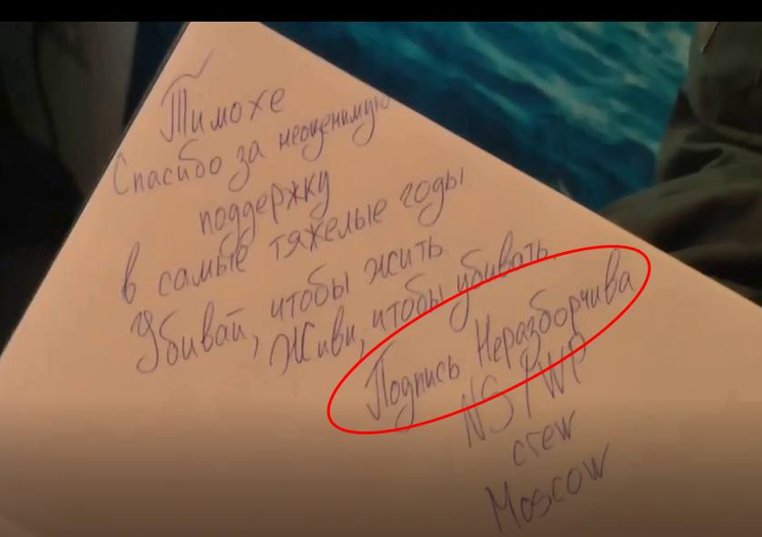 В начале показывают, как спецназ ФСБ спокойно разгружают оборудование прямо напротив подъезда. Потом стучат в дверь, причем освещая все это мощным прожектором. Неонацист открывает не посмотрев в глазок, ага. Дальше все мордой в пол, обыск, четки со свастикой и гербом Украины. И вишенка на торте - на 3:24 показвают книгу с аннотацией, которая подписана человеком Подпись Неразборчива. Да, так и написано.
