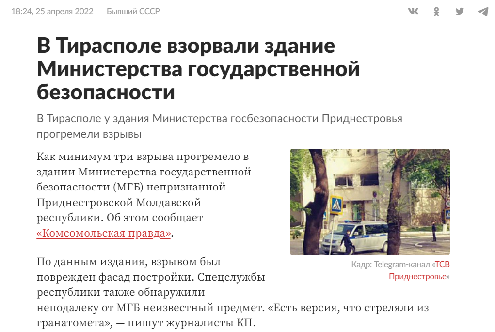 В Тирасполе взорвали здание Министерства государственной безопасности