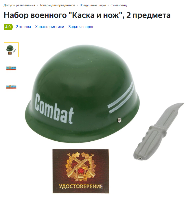 Но надо быть внимательным, вот что пишут: "Пришел не тот товар, что на фото!! Пришли синие каски и наручники с надписью полиция! А заказывал зеленые с надписью комбат и чтобы было удостоверение!!"