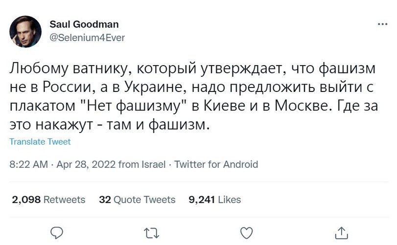 Россия опасна для человечества, но на текущий момент не смертельно.