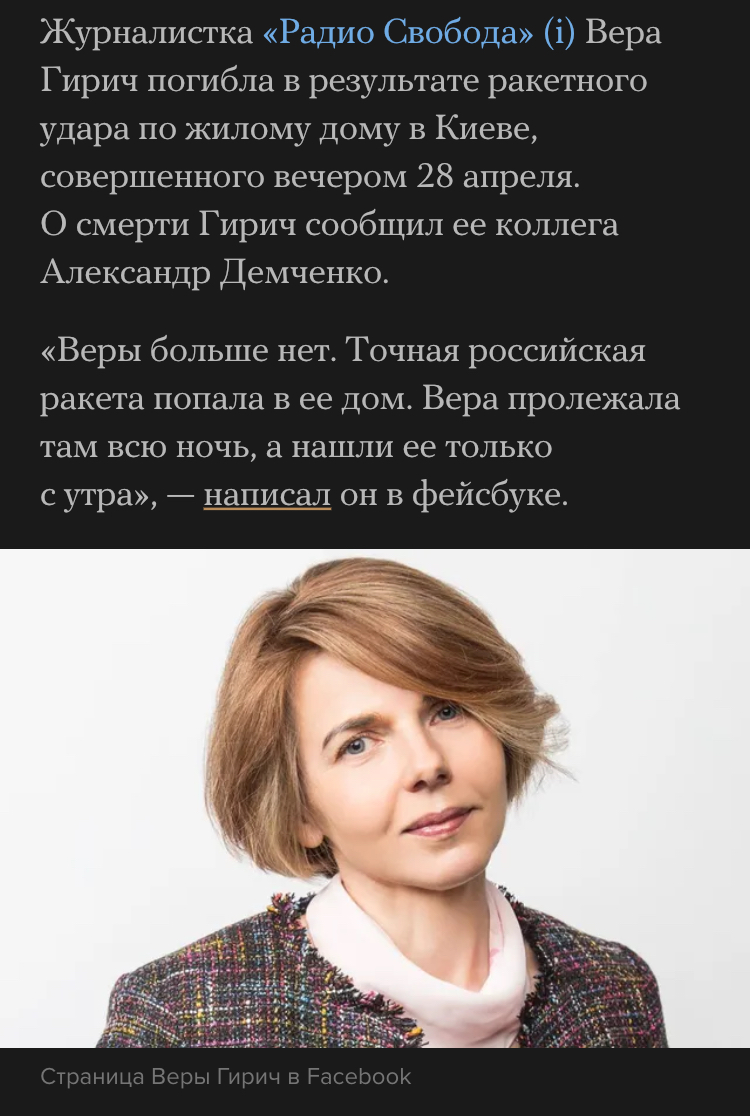 Ну и сотрудников международных организаций тоже несколько погибло, к примеру, сотрудница ОБСЕ в Харькове.