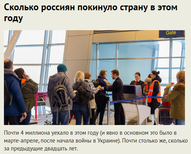 В реальности, по независимым оценкам демографов, как российских, так и западных, в первую половину 2022 года РФ покинули от 2,9 до 3,5 млн. человек, что выше иммиграции 1917-1924 годов в 3 раза.