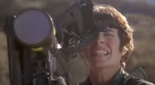 - А теперь возьми такую штуку, похожа на банку кофе... (запуск вертолётной ракеты "воздух-воздух" с земли):