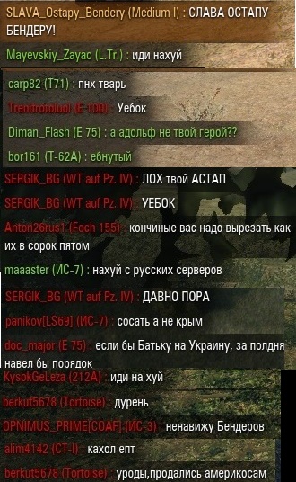 "Закатать в каменный век", "ядеркой их", "убить всех" и так далее, с перерывами на мантры про несуществующее государство и, самое смешное, "адин народ".