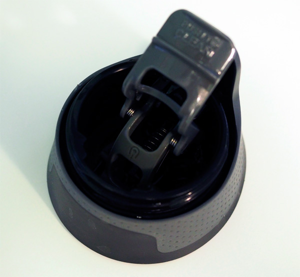 Крышка откручивается. На крышке есть блокируемое отверстие, через которое выливается напиток, замок блокировки и кнопка налива.