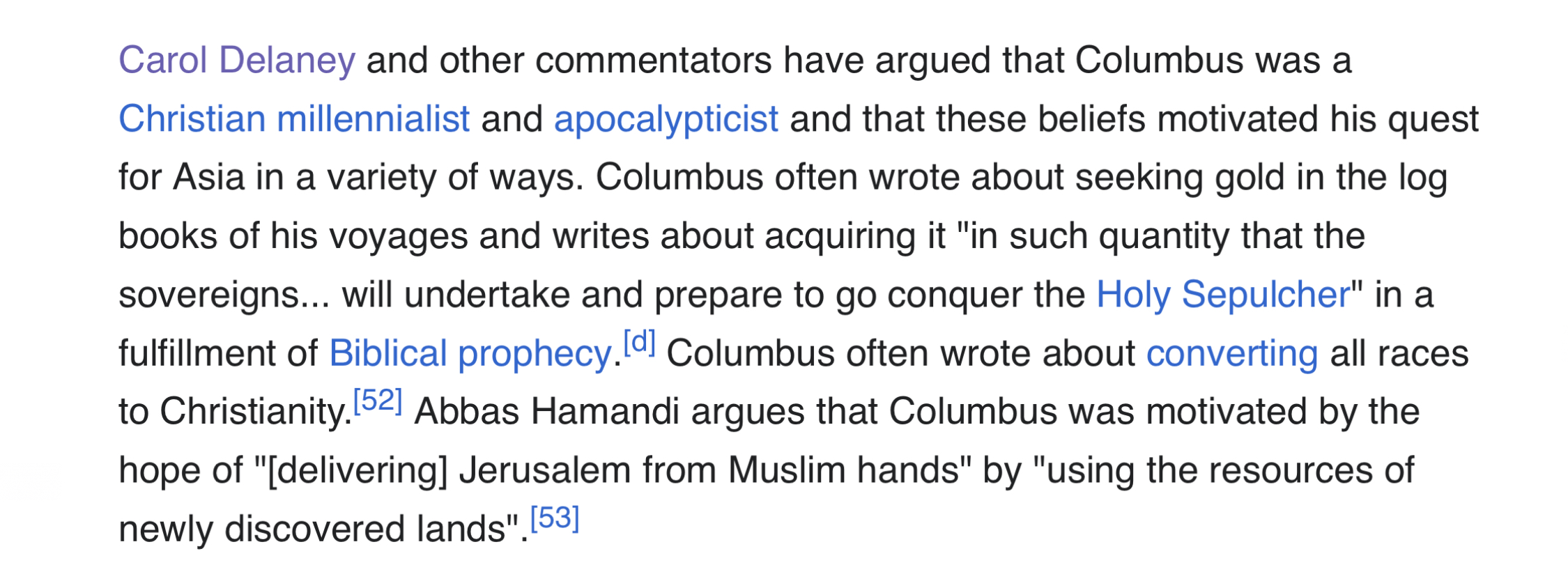 «Вероятность того, что Колумб был оттуда, минимальна. Не было большого еврейского присутствия и на остальной части итальянского полуострова, что делает [информацию о его происхождении] весьма сомнительной. Нам остается испанская часть Средиземноморья, Балеарские острова и Сицилия. Но Сицилия тоже маловероятна, потому что тогда Христофор Колумб писал бы с некоторыми чертами итальянского или сицилийского языка. Все это означает, что его наиболее вероятное происхождение — испанское Средиземноморье [восток и юг Испании] или Балеарские острова, которые в то время принадлежали Арагонской короне».