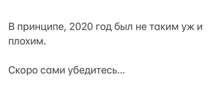 Не очень понимаю почему у всех такая твердая уверенность что 2021 будет чем то лучше. Хотя да, ну как же, у нас ведь теперь есть чудо-вакцины, скоро будут чудо-лекарства от чудо-женщины (я про Веронику Скворцову, если что, а не про ту, в чудо юбочке), ну и, самое главное, наш волшебный чудо-президент по прежнему с нами. Так что будем на все эти чудеса надеяться. Всех с Наступающим!)