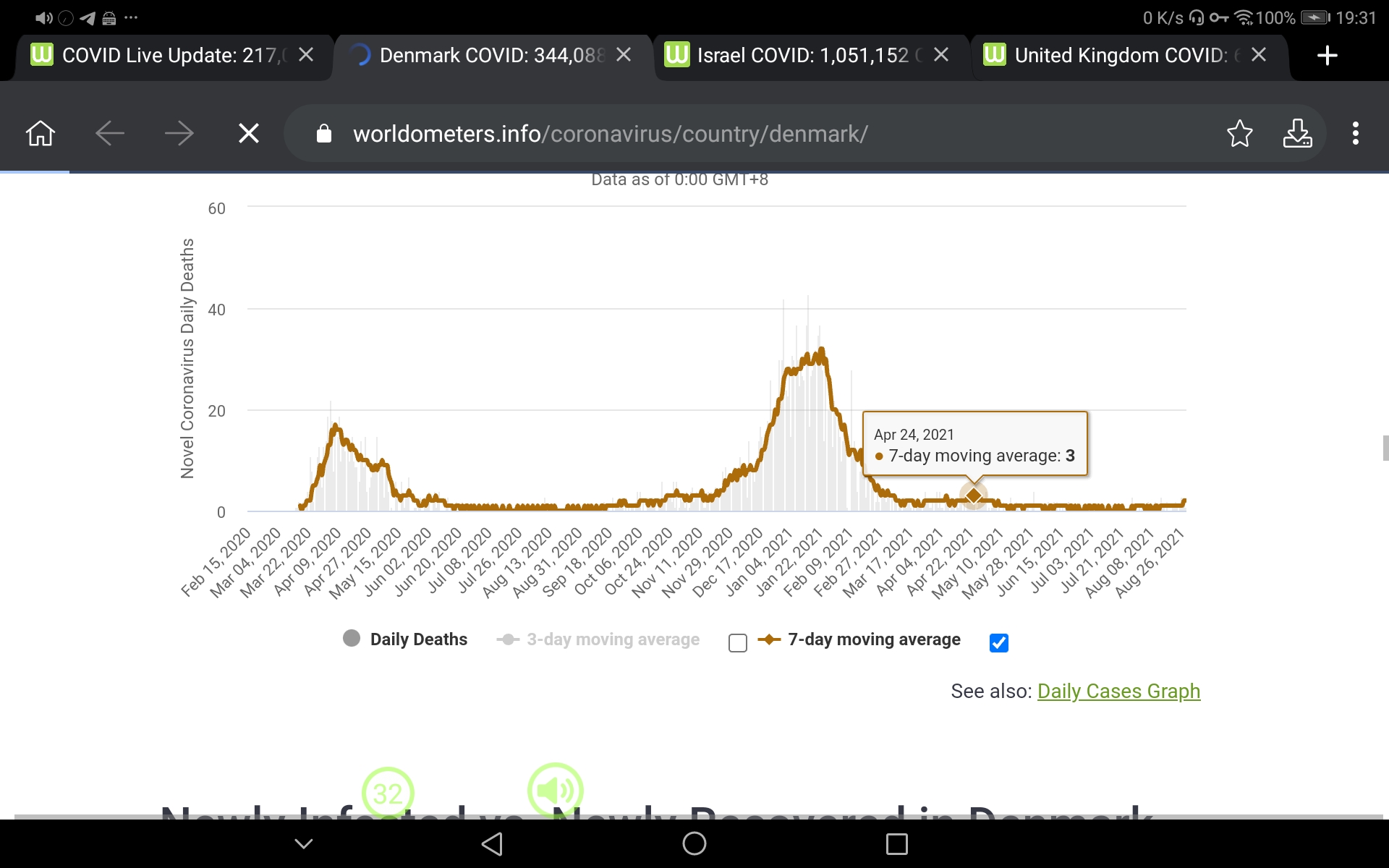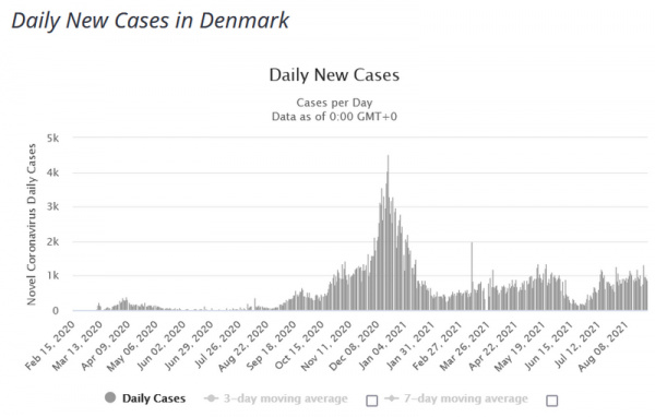 По официальным данным на 26 августа, в Дании полностью вакцинировано почти 80 процентов жителей старше 12 лет, более 85 процентов прошли частичную вакцинацию. С начала пандемии коронавирус в 6-миллионной стране был выявлен у более 340 тысяч человек, около 2,5 тысячи пациентов скончались от последствий COVID-19. (Отсюда.)