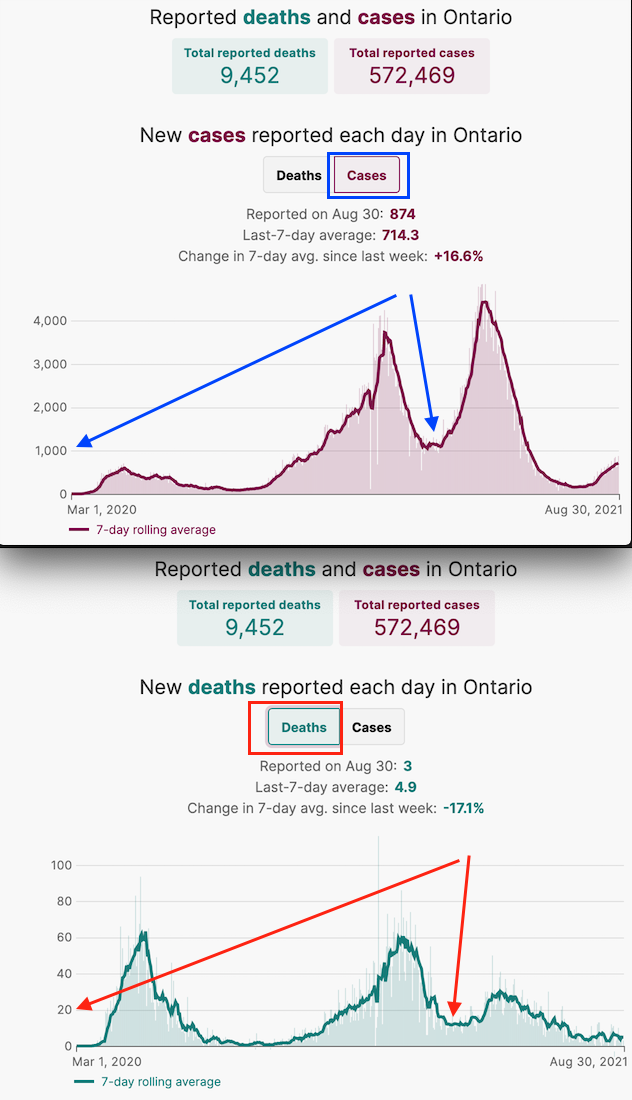 В Украине намного хуже выявление новых случаев, и люди забивают идти тестироваться, и власти особо не парятся. А летальность вируса в вакцинированных странах, конечно, уже ниже, чем в невакцинированных. Госпитализируются теперь в среднем более молодые и здоровые люди, чем раньше, с бОльшим запасом жизненных сил и врачам удается их спасать.