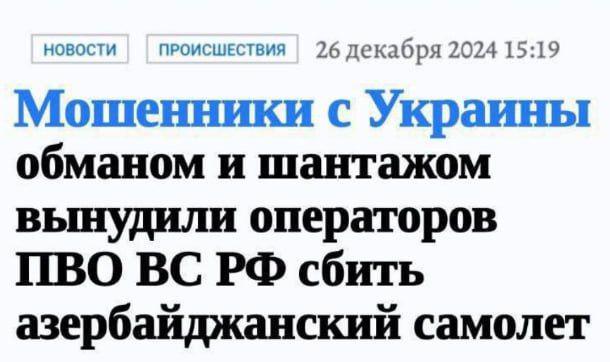 Ну и сам ролик, если вы вдруг почему-то не видели этот зашквар. Особенно актуальный на фоне того, что в Мордоре вчера рядом с Грозным обстреляли азербайджанский самолет, после чего не разрешили ему сесть на ближайших аэродромах, погнали его через Каспий, чтобы скрыть следы обстрела, отключили ему GPS и так далее - этот ролик выглядит прямо-таки провидческим.