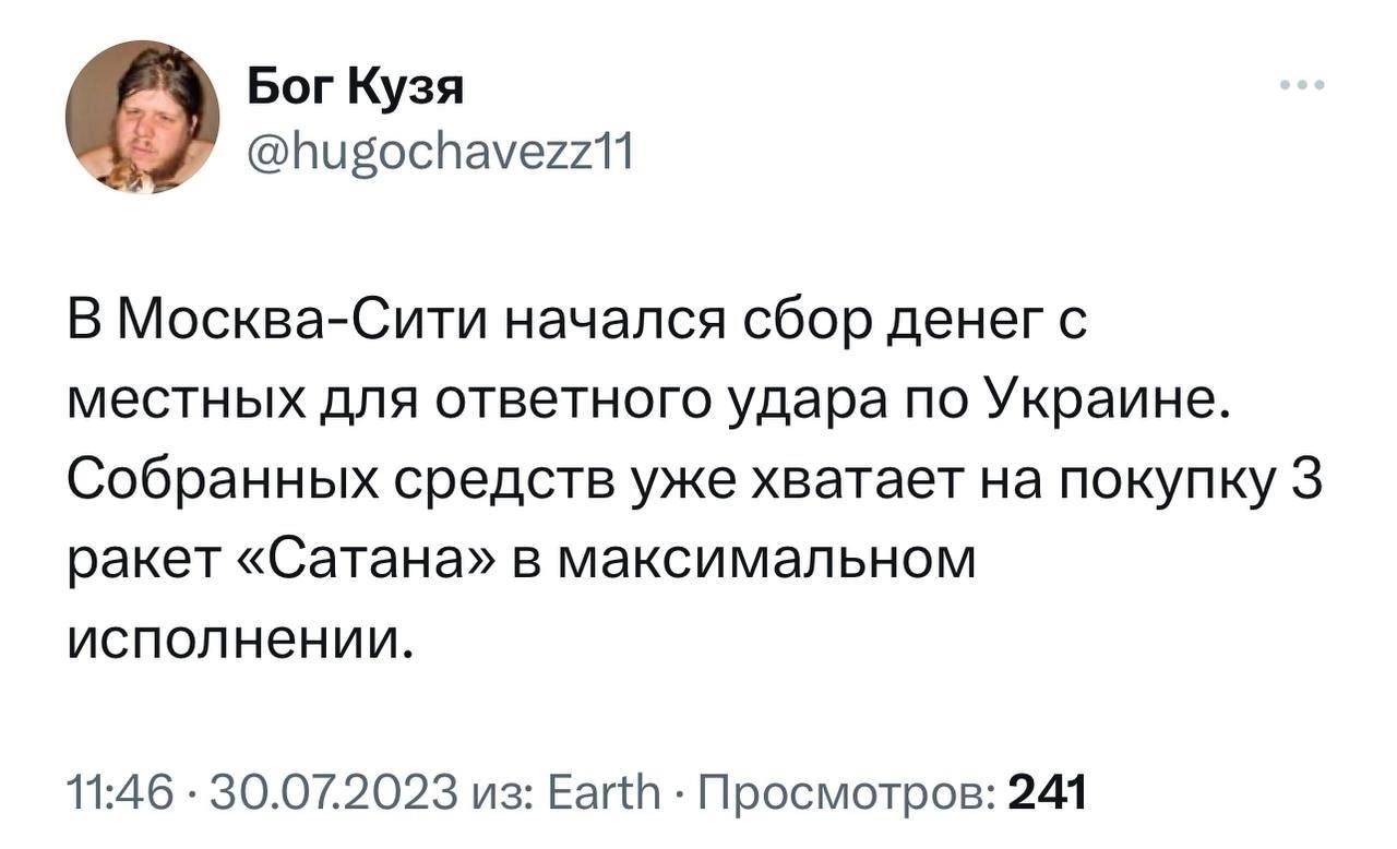 На самом же деле ПВО работает нормально, нам Шойгу все объяснил. Беспилотник в воскресенье целился совсем не туда, но был подавлен, поэтому подавленный попал в башню "IQ-квартал". И в понедельник летел совсем не туда, но был подавлен, а подавленные беспилотники куда летят? Правильно, в башню "IQ-квартал". Я считаю, что башню пора переименовывать в "Башню подавленных беспилотников".