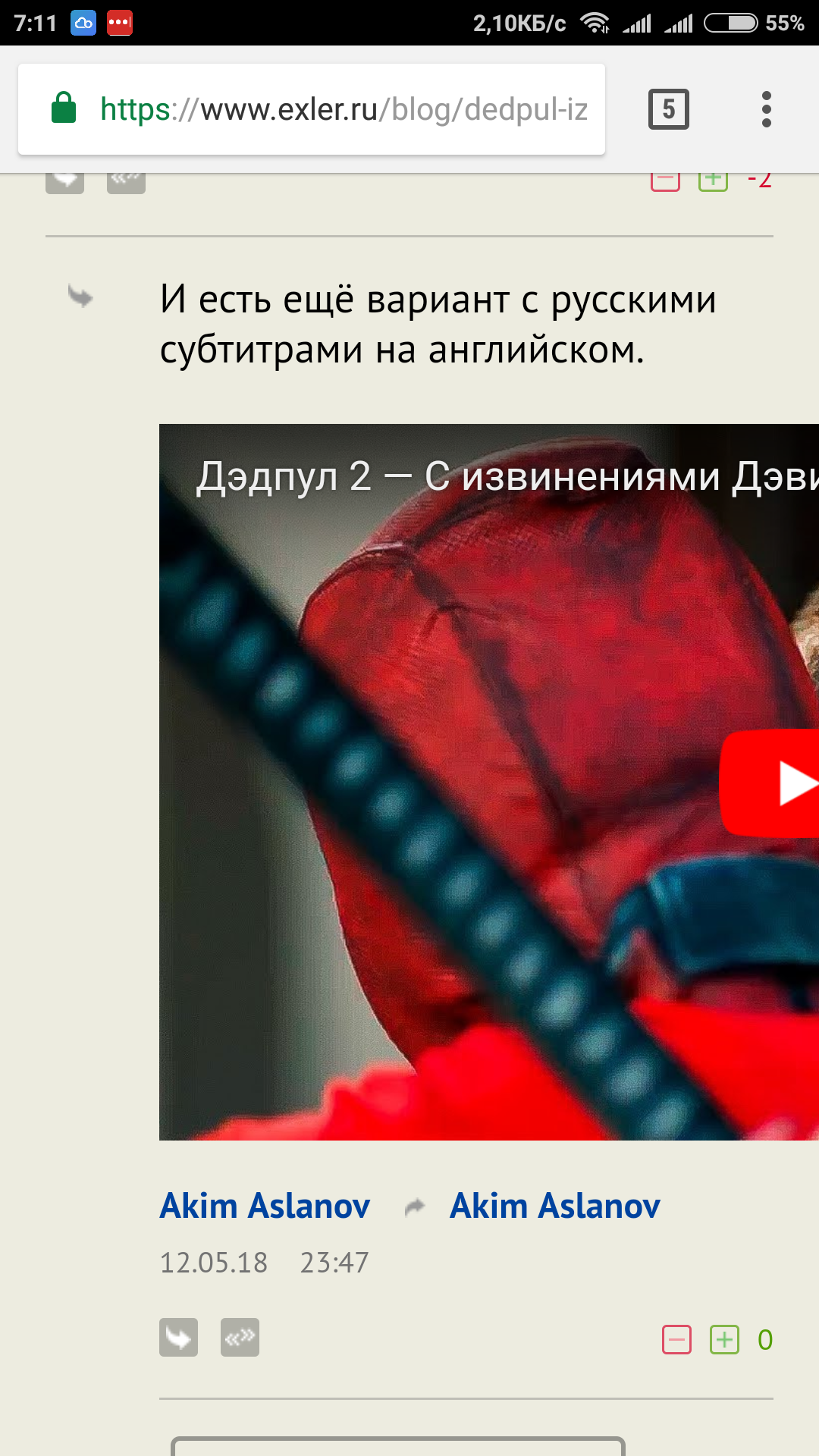 С русским переводом. Извиняется за шутку из первого "Дедпула".