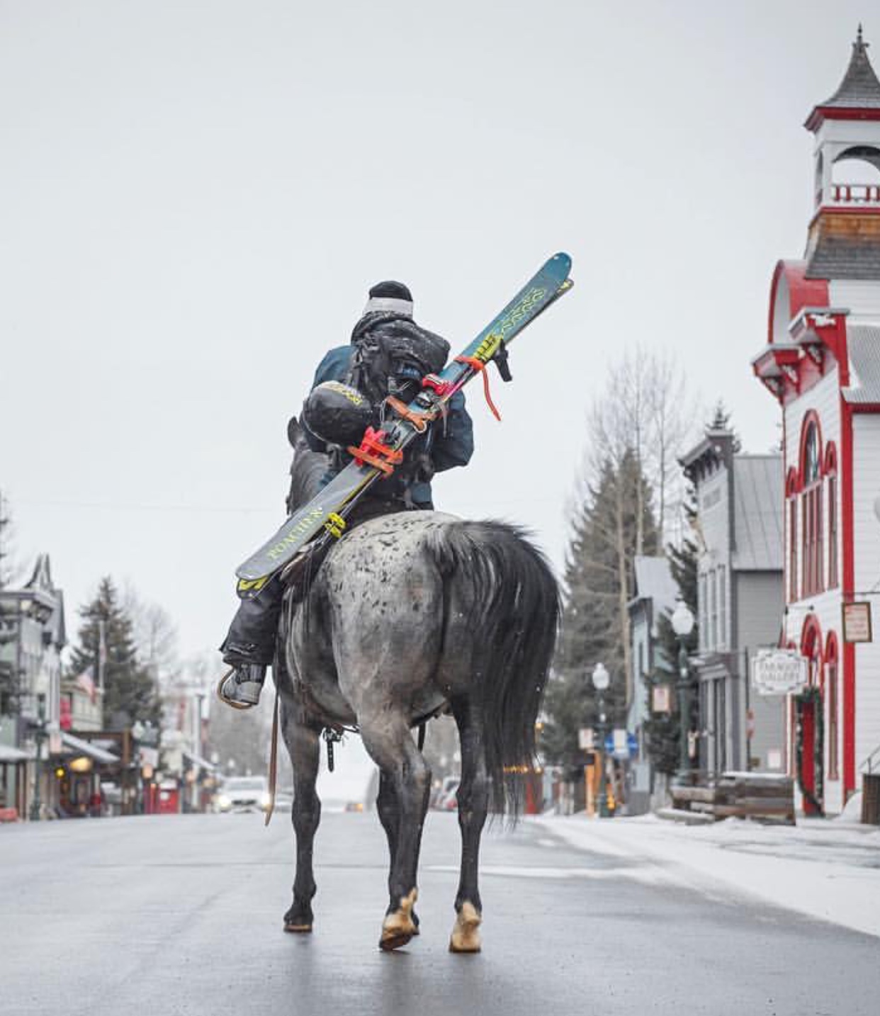 Скорее всего, это лошадь самого лыжника )