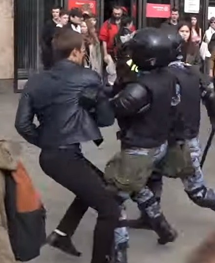 Напомню обстоятельства дела. Во время акции протеста 3 августа Павел Устинов стоял у метро и разговаривал по телефону. Неожиданно на него налетели шестеро росгвардейцев, повалили Павла на асфальт и стали избивать его дубинками. Один из росгвардейцев по фамилии Лягин так расстарался, избивая Устинова, что вывихнул себе плечо.