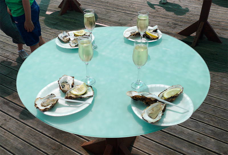 Кстати, капитан кораблика рассказал, что залив постепенно умирает. В том смысле, что песчаную косу подмывает море, коса постепенно уходит под воду и через относительно непродолжительное время свойства залива сильно изменятся. И тогда устричных ферм там уже не будет, они не выживут в обычной морской воде.