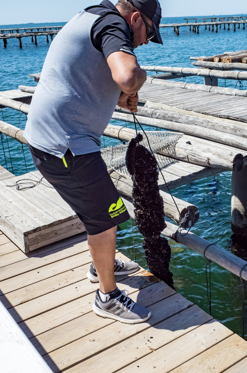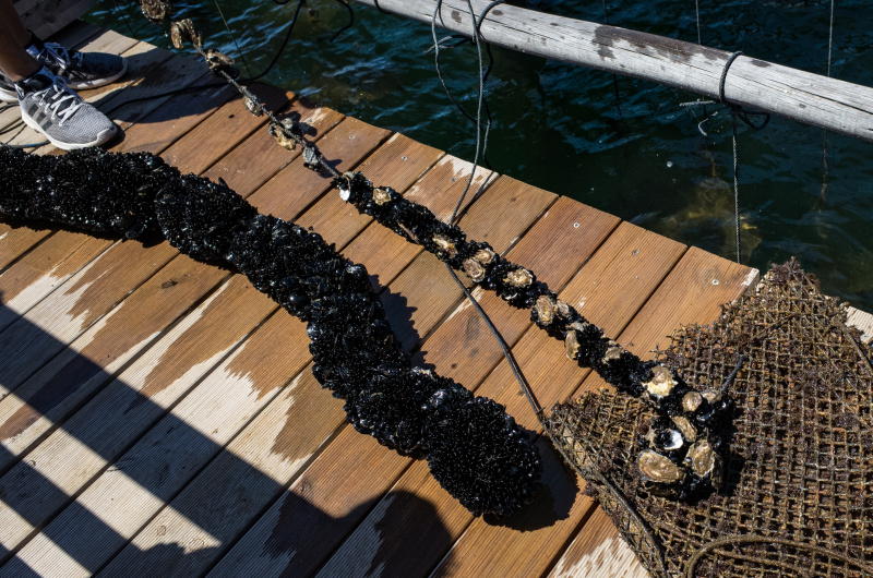 Приехали на самую знаменитую ферму, которой много лет рулит дедушка... не запомнил его имени, но он наверняка Джосеп или Ореоль. К тому же дедушки не оказалось на месте и нас обслуживала его помощница. Это тоже ресторанчик на воде. Туристам показывают, как выращивают мидии и устриц, ну и прямо на месте можно полакомиться свежайшими устрицами и свежесваренными мидиями.