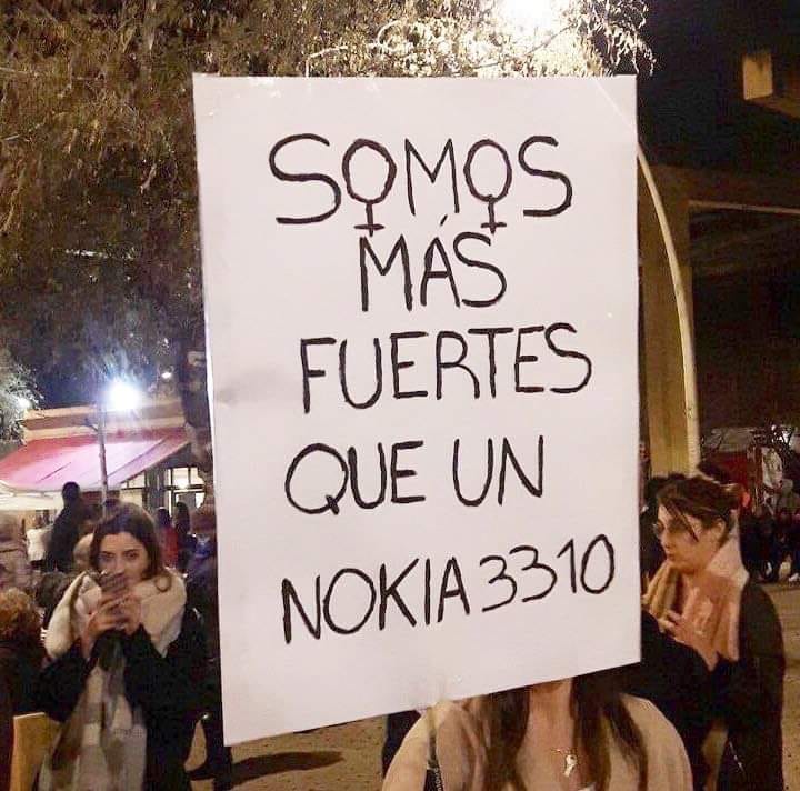 На самом крупном плакате была надпись "Мы - не принцессы, мы - драконы". И вот еще был плакат интересный. На нем написано "Мы сильнее, чем Nokia 3310".