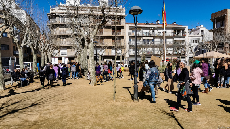 Вчера в нашем городке прошла небольшая, но довольно шумная демонстрация женщин и девушек, которые боролись за свои права. Четыре плаката, два барабана, скандировали какие-то лозунги на каталанском.