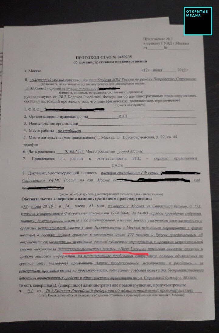 Задержаных обвиняют а том, что они выкрикивали антиправительственные лозунги, - "Иван Голунов", - да, прямо так и пишут в протоколы.