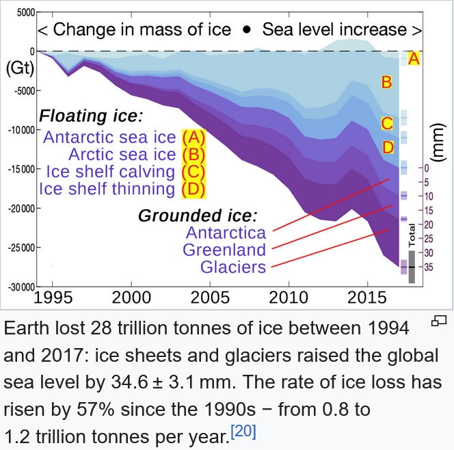 Ледники и полярные шапки уже активно и всё быстрее тают, уровень Мирового океана повышается и грозит поглощением прибрежных городов.