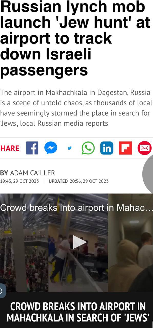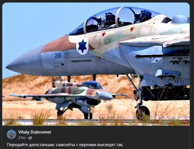 Но отмечу, что денацификация в Махачкале идет полным ходом, полиция проявляет благоразумие и сдержанность, аэропорт практически полностью захвачен неравнодушными гражданами, поиски явреев, посмевших проникнуть на территорию Дагестана (если они вообще осмелились) осуществляются повсеместно, турбины самолета также проверены все теми же гражданами.